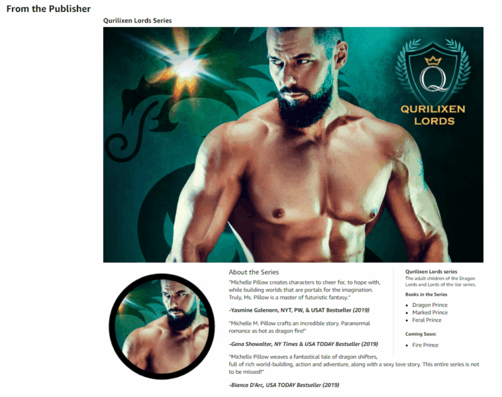 An interesting example of how Amazon’s A+ content can be used to give more information on the fiction book’s content and protagonist.